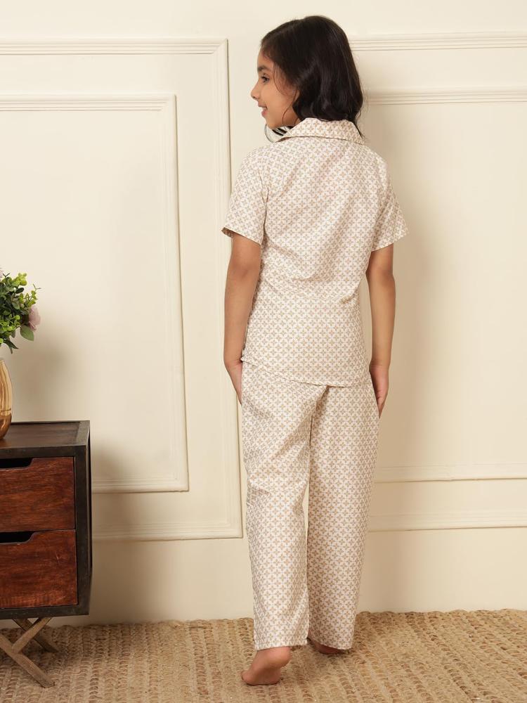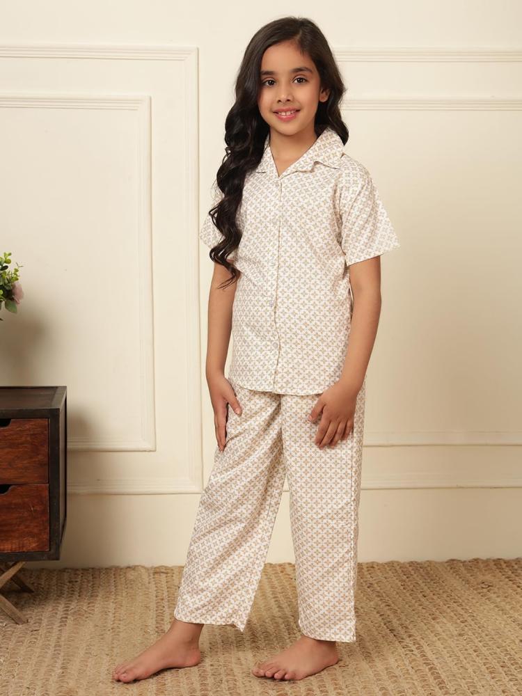 اطلبي الآن طقم بيجامة من القطن مكون من قميص نصف كم بياقة وأزرار للبنات من متجر rokn-alanaqa ووفري لطفلتك راحة وأناقة كل ليلة