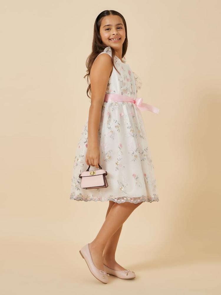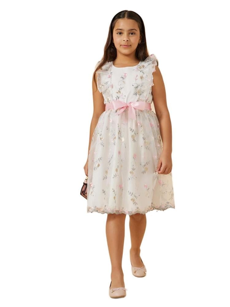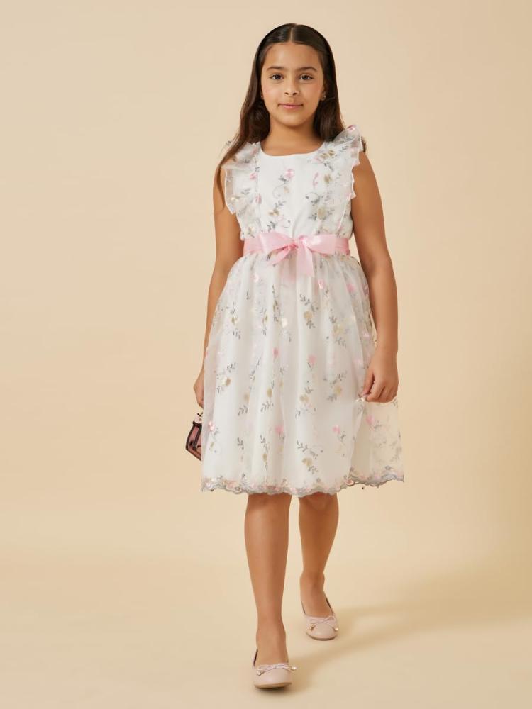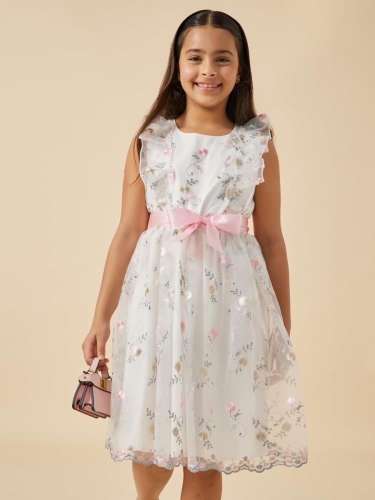 اطلب الآن فستان شبكي مطرز بتفاصيل مكشكشة مع حزام للبنات من ستايلي من متجر rokn-alanaqa وتمتعي بإطلالة طفلتك المميزة والأنيقة في كل مناسبة